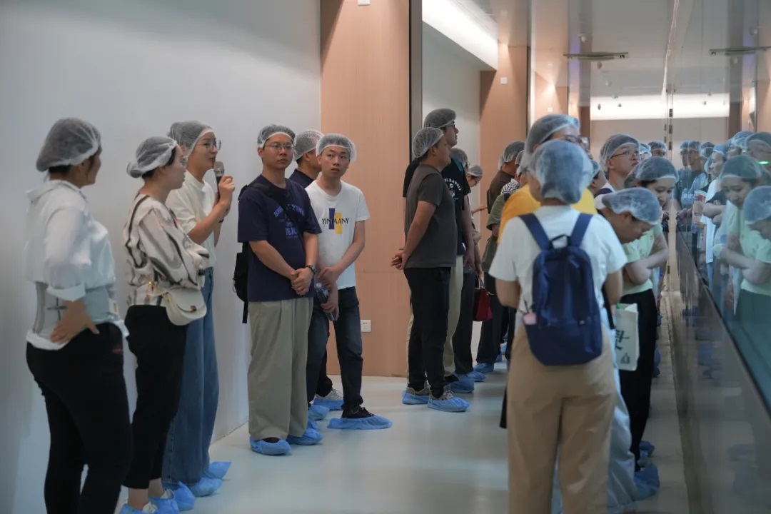 活動伊始,大家穿戴好一次性帽子和鞋套進(jìn)入了車間,一股淡淡的甜香撲鼻而來,那是糕點(diǎn)烘焙后散發(fā)出的誘人香氣。大家沿著整潔的生產(chǎn)線參觀,看到工人們身著統(tǒng)一的工作服,手法熟練地進(jìn)行著各道工序。通過生產(chǎn)負(fù)責(zé)人的講解,大家了解了合和圓緣工廠的材料使用、制作工藝、冷鏈運(yùn)輸?shù)雀髁鞒痰墓ぷ饕?guī)范和要求,也見微知著地感受到了合和圓緣細(xì)節(jié)體現(xiàn)的匠人追求和專業(yè)素養(yǎng)。