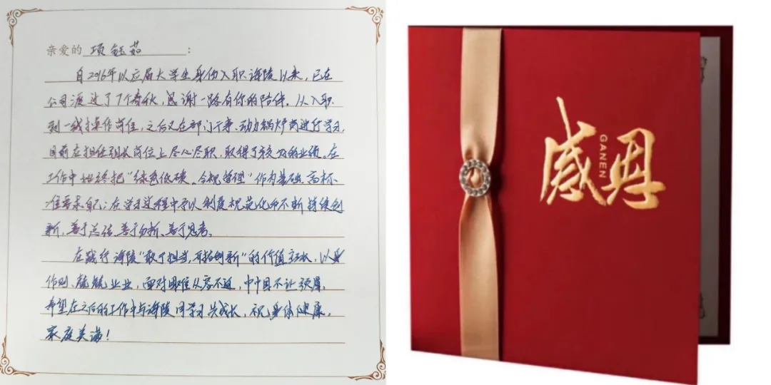 海陵衷心對她們的付出表示感謝,并為其準(zhǔn)備了感恩卡和禮物,直屬領(lǐng)導(dǎo)“驚喜出現(xiàn)”,將手寫感謝卡和禮物交給她們!