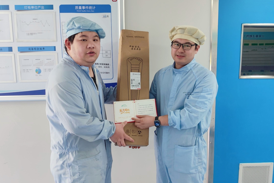 熱心腸的他,用積極樂觀的態(tài)度溫暖著車間的每一位伙伴。車間改造期間,他主動幫忙搬運設(shè)備;公司借調(diào)其他子公司員工,他主動騰出自己的宿舍。他帶教的工段,人員團結(jié)、保留率高。2022年年底,面對車間人員不足的棘手狀況,他提出調(diào)至灌封崗、潔凈區(qū)幫忙的想法。他心里清楚,灌封環(huán)節(jié)缺人會直接影響生產(chǎn)效率。他的學(xué)習(xí)能力都被大家看在眼里,只要他想學(xué)就能快速掌握技能。在溝通過程中,他意識到前道產(chǎn)出效率的重要性,孔吉宇選擇繼續(xù)留在滅菌崗,為前道生產(chǎn)的穩(wěn)定保駕護航。