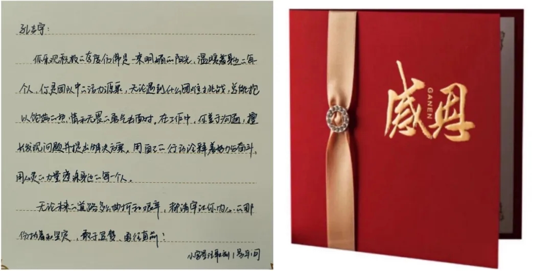 海陵衷心對他們的付出表示感謝,并為其準備了感恩卡和禮物,直屬領(lǐng)導(dǎo)“驚喜出現(xiàn)”,將手寫感謝卡和禮物交給他們!