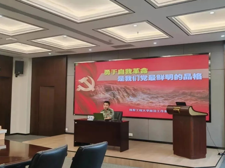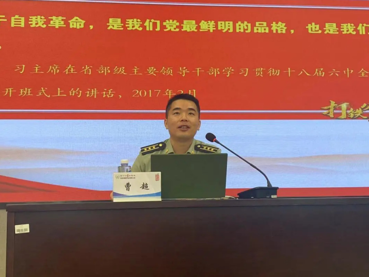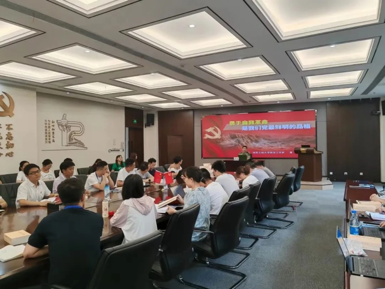 會議的第二項,全體與會人員進行了專題黨課學習。陸軍工程大學政治工作系曹超副教授為大家進行了主題為《勇于自我革命是我們黨最鮮明的品格》的專題匯報。曹教授肯定了海陵黨支部的凝聚力、戰(zhàn)斗力,并以黃培炎和毛澤東關于“如何跳出治亂興衰的歷史周期律”的探討為切入點,從以下三個方面進行了詳細闡述: