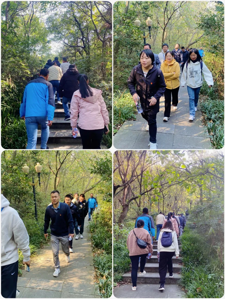 海陵選擇了更具挑戰(zhàn)性的路線。深林靜謐,空氣清新,眾人沿著陡峭的臺(tái)階上行。起先,大家信心滿懷,激情高昂。然而,隨著腳步的邁進(jìn),肌肉酸痛和呼吸急促的感覺逐漸襲來,大家逐漸感受到了身體的疲憊和意志的挑戰(zhàn)。此時(shí),有的同事氣喘吁吁,有的同事步履蹣跚。