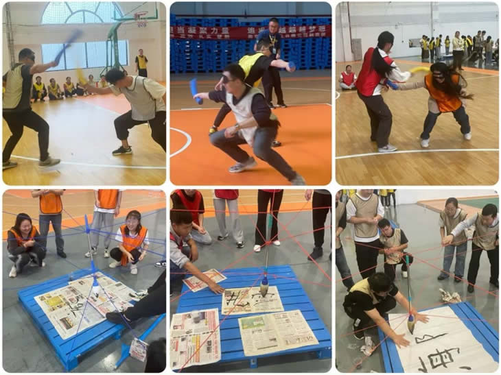 “華山論劍”要求團隊全員共同指揮一人,彼此競爭切磋。隨著戰(zhàn)況的緩和激烈,時而寂然無聲,時而人聲鼎沸。勝負只在一瞬之間,現(xiàn)場隨著精彩的對決而爆發(fā)出陣陣歡呼聲。“共繪藍圖”則要求一人指揮,全員合力達成目標。參與的成員不由自主地屏住呼吸,生怕自己的呼吸擾亂了正在書寫的筆尖?!昂A辍薄罢\實”“守信”“高效”“扎實”“硬朗”。每一個團隊都緩慢而堅定地寫下了自己所選擇的詞語。